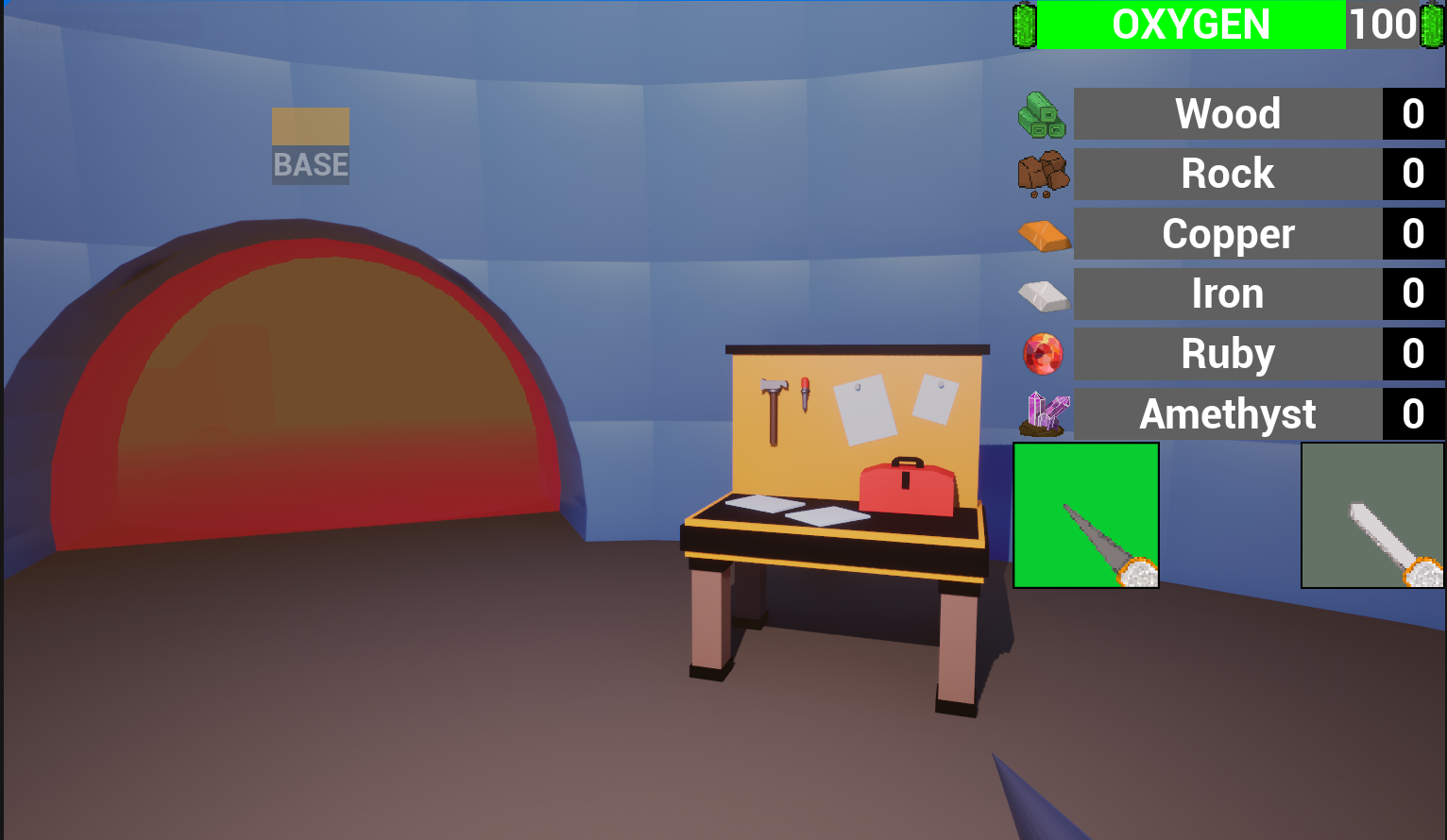 your task is to try and find your ship which has crashed on the planet and repair it by gathering materials and rebuilding your ship. There is no oxygen on the planet so you have to rely on your dome to survive.